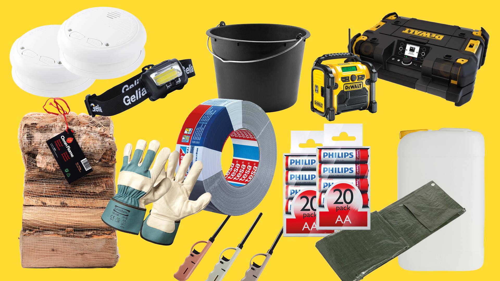 Disse gjenstandene kan hjelpe deg å dekke de mest grunnleggende behovene for varme, lys, sikkerhet og informasjon i en krisesituasjon: Mange av dem kan du få tak i hos Bygger'n. (Ikke alle produkter er på lager i alle butikker, sjekk tilgjengelighet og lagerstatus på byggern.no)