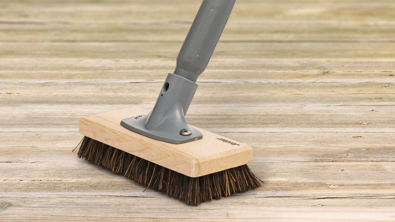 Rengjør terrassebordene godt før du går i gang med EasyPad. En stivbustet terrasseskrubb fjerner skitt, smuss og gammel beis. Bruk egnet vaskemiddel.