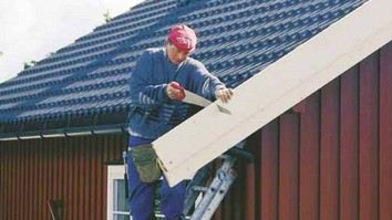 ved å legge den midlertidig over den første. Slik kan du merke av nøyaktig hvor du skal kappe, dvs. langs underkant av første vindski.