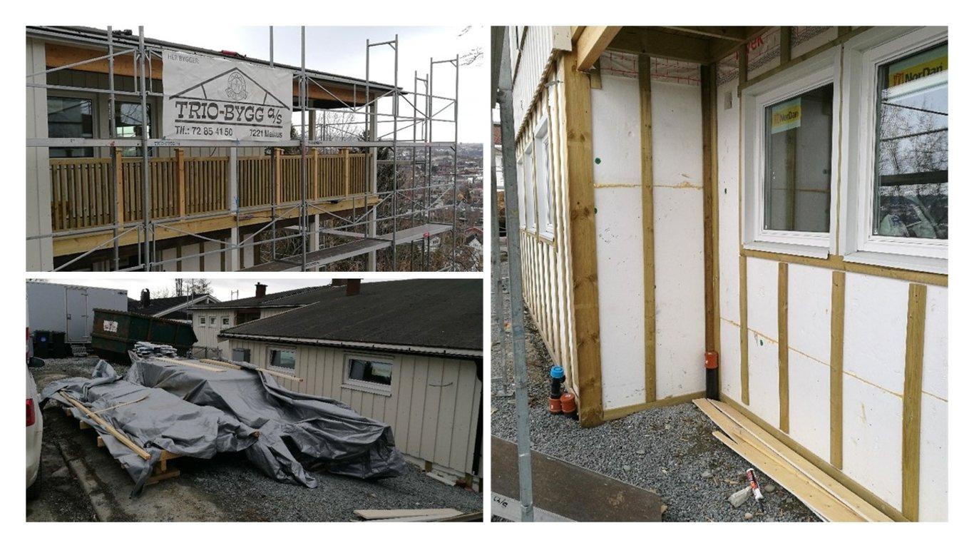 Bilder fra et rehabiliteringsprosjekt Trio-Bygg jobber med i Trondheim. De føler seg trygge med å jobbe her siden huset står tomt.